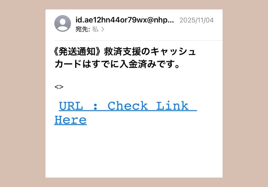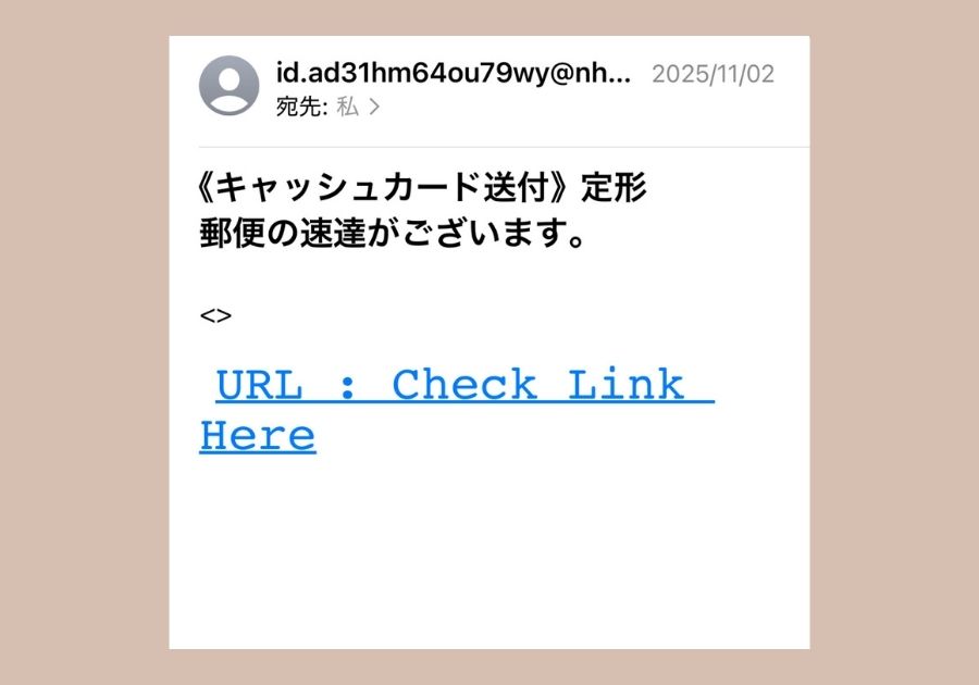 キャッシュカード発送を装うメールは